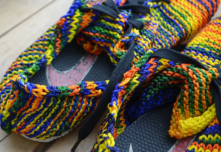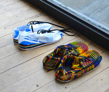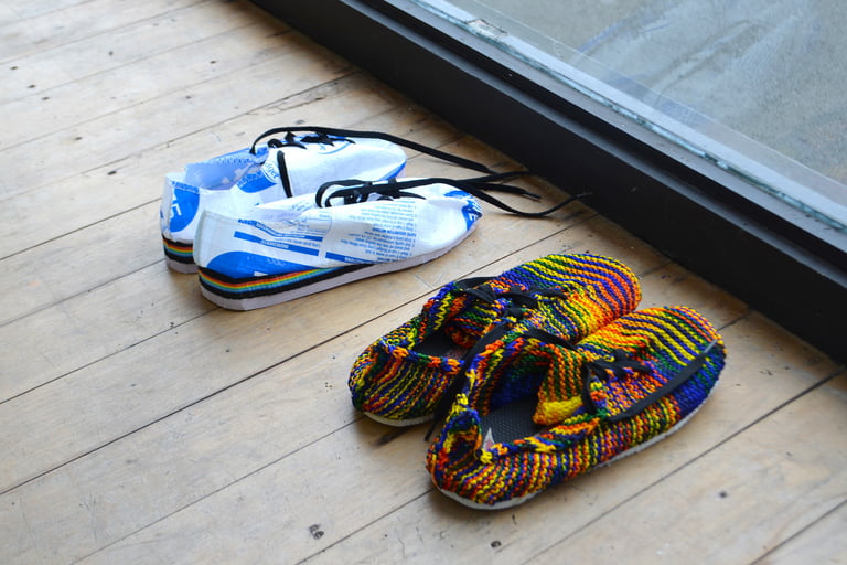 Rice sack, jandals (South Pacific flotsam), laces, polyester twine, basketball
