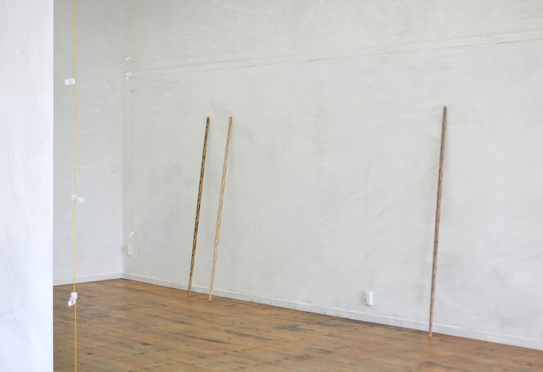 Installation view of Bō (fighting staff for working among rāpoka sea lion colonies)