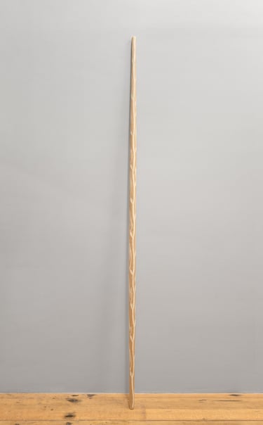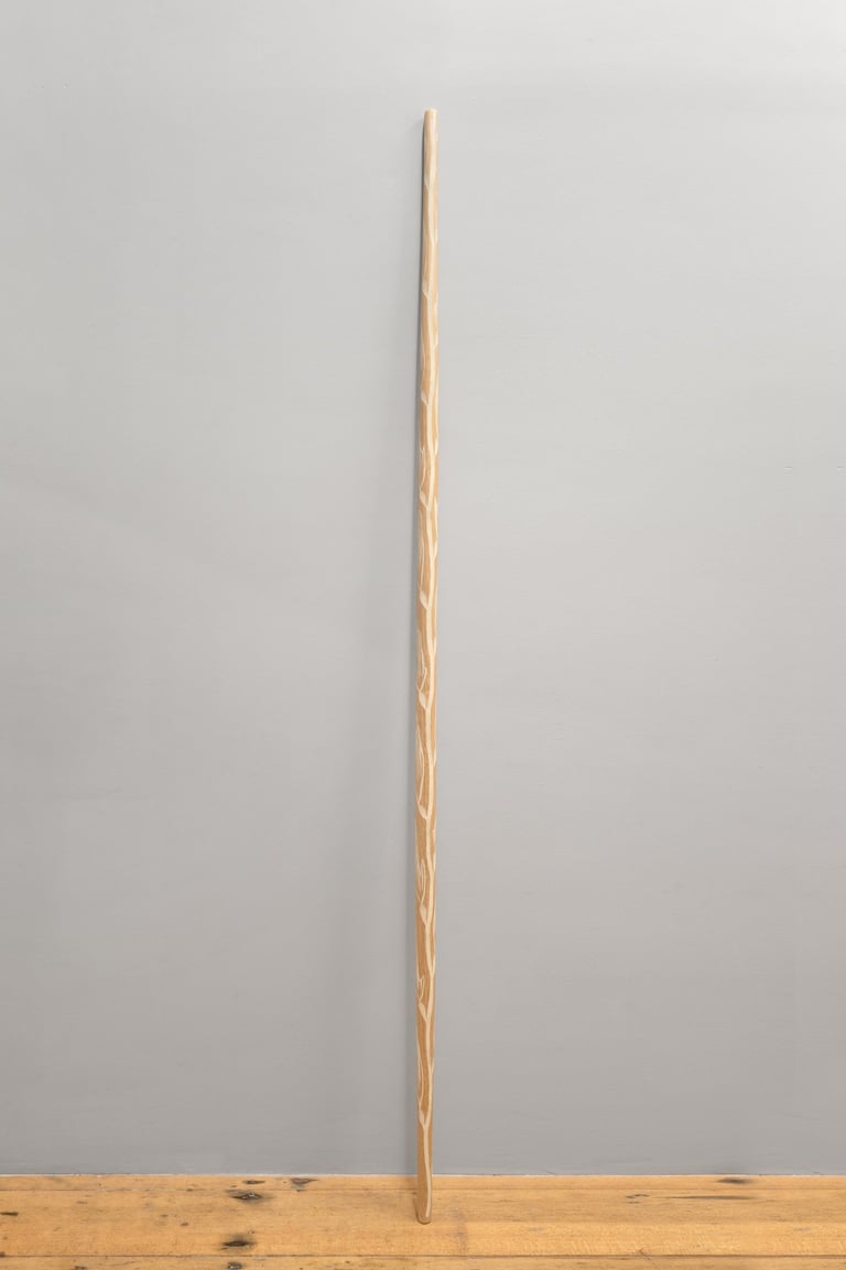 Hand-planed and carved American white oak, gesso, epoxy resin, made to the dimensions of an Okinawan karate bō staff, ornamented with sub-antarctic bladder kelp