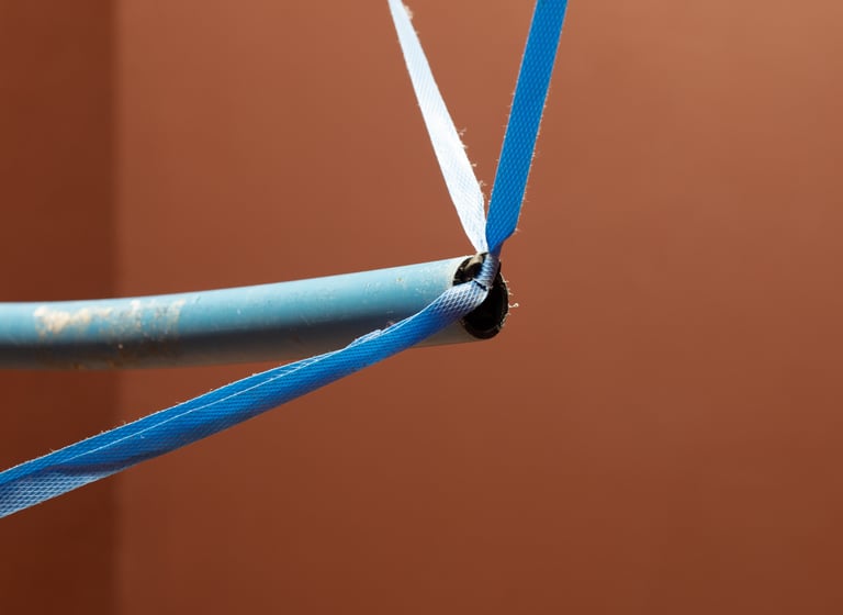 Found plastic pipes, tyre, inner tubing, plastic strapping, fixings