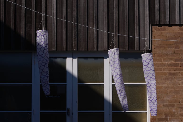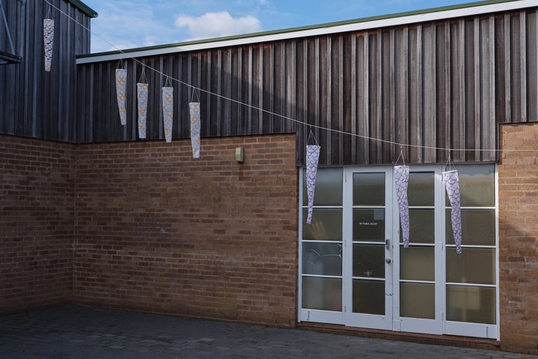 Old sails, acrylic marker pen, fixings